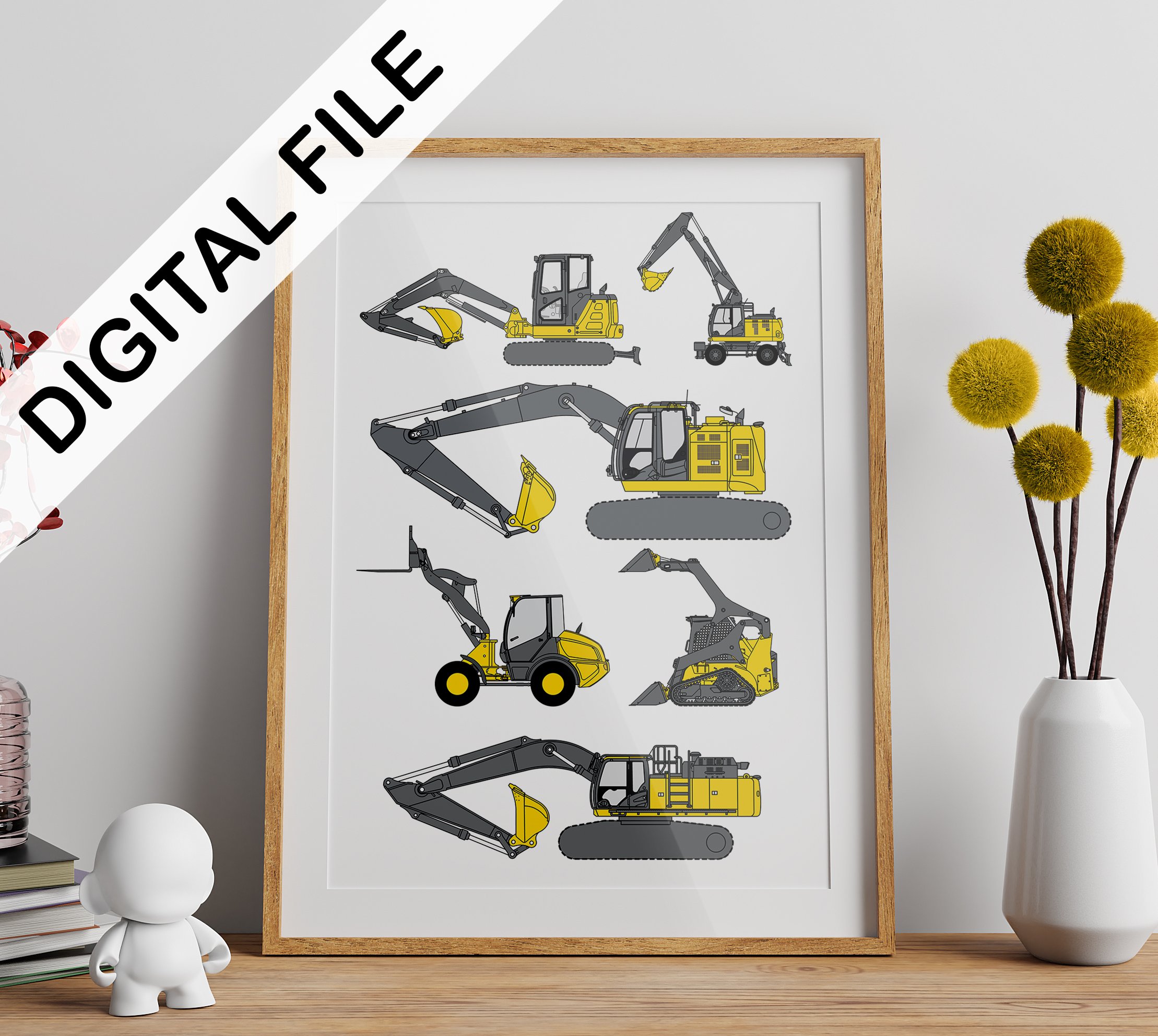 touch of construction-themed decor to your home or child room. Each design features a well-known brand and is sure to impress