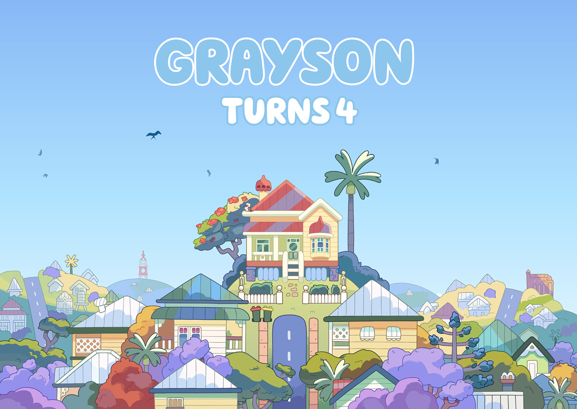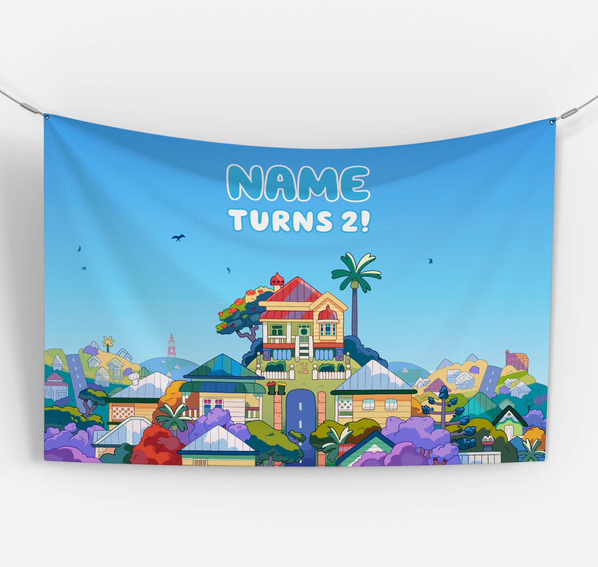 Bluey family printable party backdrop personalized banner - Bluey house birthday personalized poster