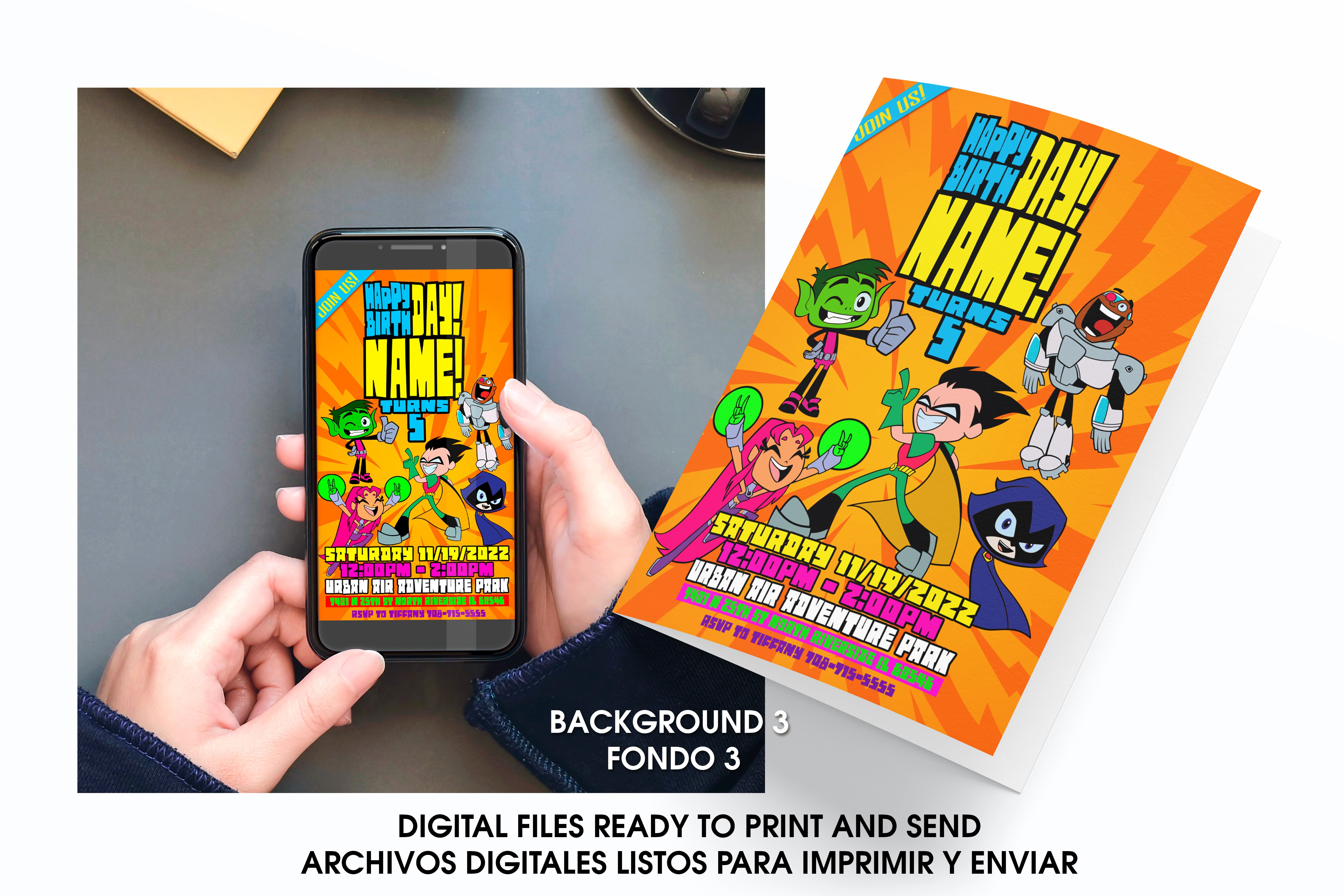 Teen titans birthday party invitations card personalized - High quality ready to print